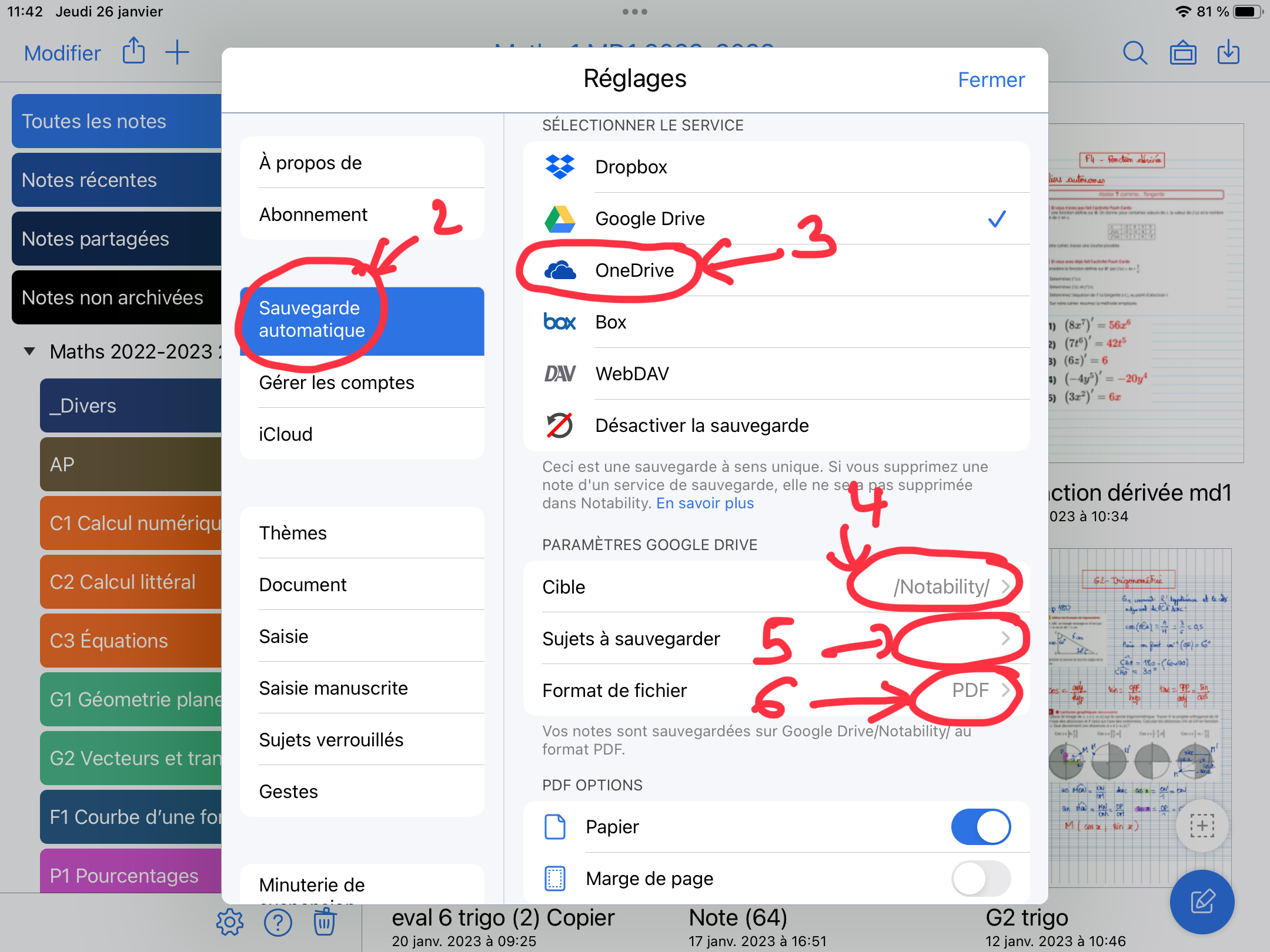 Il suffit de dire à Notability de créer des sauvegardes en PDF sur un cloud :