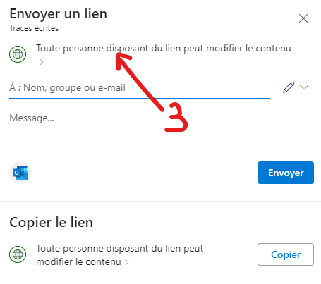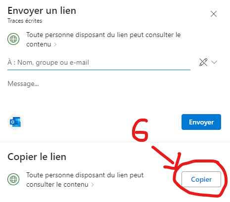 3 - Obtenir le lien à partager retour sommaire